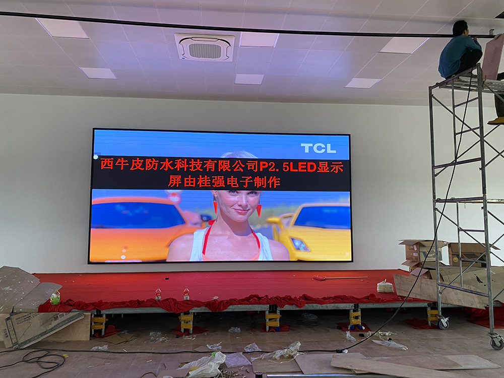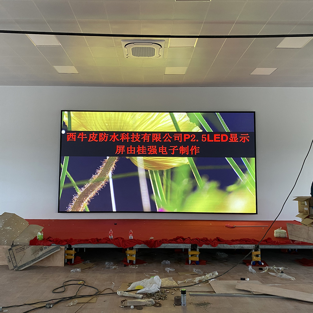 *1、承建企業:廣西南寧桂強電子科技有限公司 *2、案例名稱:項目名稱命名:南寧西牛皮防水公司P2.5全彩 38平米 *3、規格:PH2.5 4、管芯:東山精密 *5、結構:顯示屏結構(掛墻) 6、面積:38平方米 7、項目規模:15W *8、應用類別:商業廣告/體育場館/創意顯示/交通誘導/安防監控/虛擬顯示/會議顯示/信息發布…… *9、竣工日期:2020年5月 *10、項目簡介及產品特點:本顯示屏安裝于會議室大堂內,,給客戶帶來了很大的視頻播放效果,。