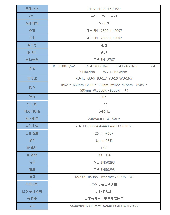 | 備注 | *本參數(shù)解釋權(quán)歸廣西南寧桂強電子科技有限公司所有 |