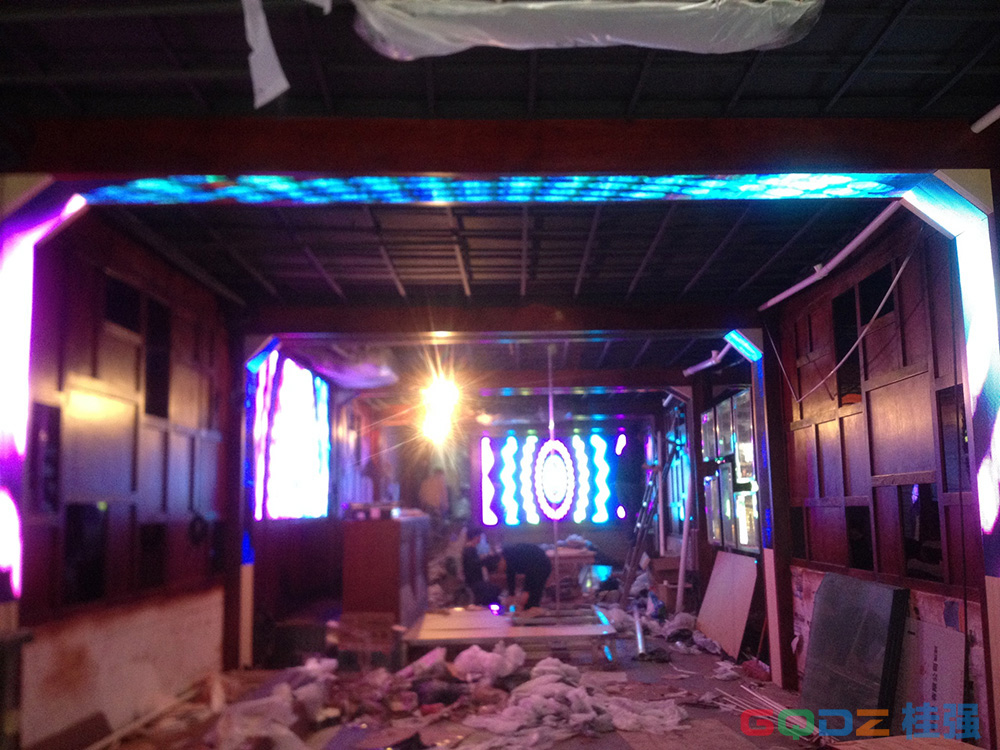 *11、項(xiàng)目簡(jiǎn)介及產(chǎn)品特點(diǎn):本顯示屏安裝于酒吧大廳內(nèi),效果很震撼!
