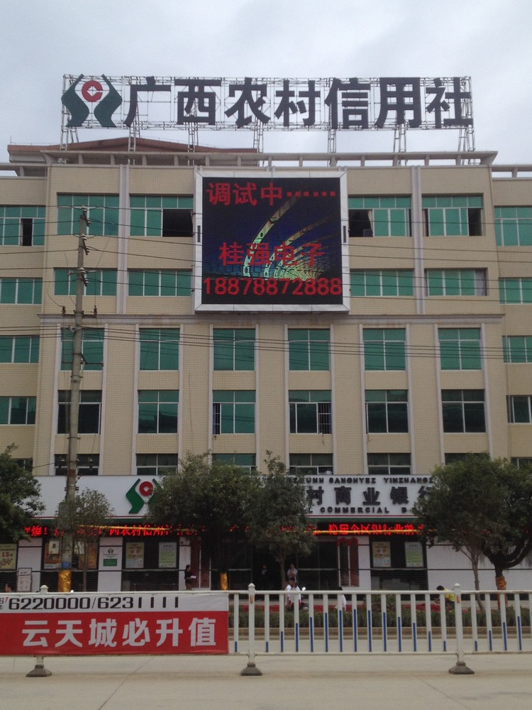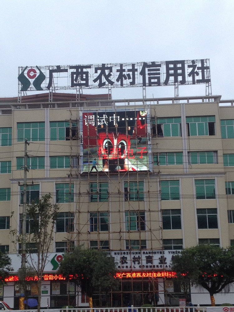 2、案例名稱:項目名稱命名:廣西靖西縣農村合作社戶外P10全彩LED顯示屏 43平方