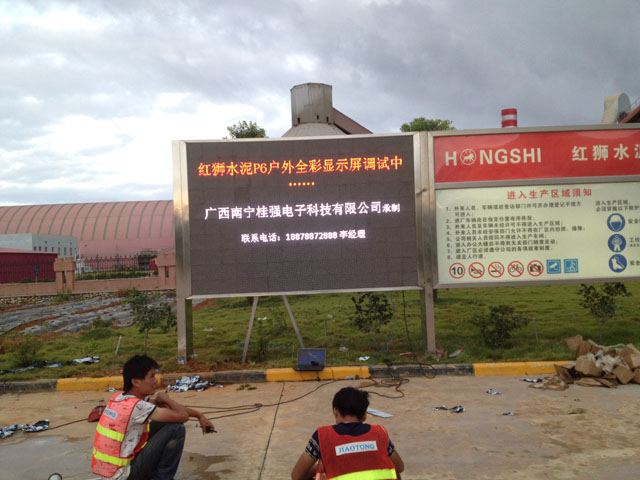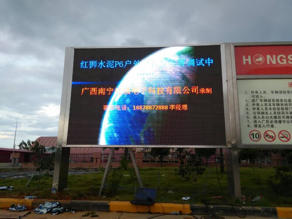 2、案例名稱:項目名稱命名:南寧市武鳴縣紅獅水泥戶外P6全彩顯示屏 10平方