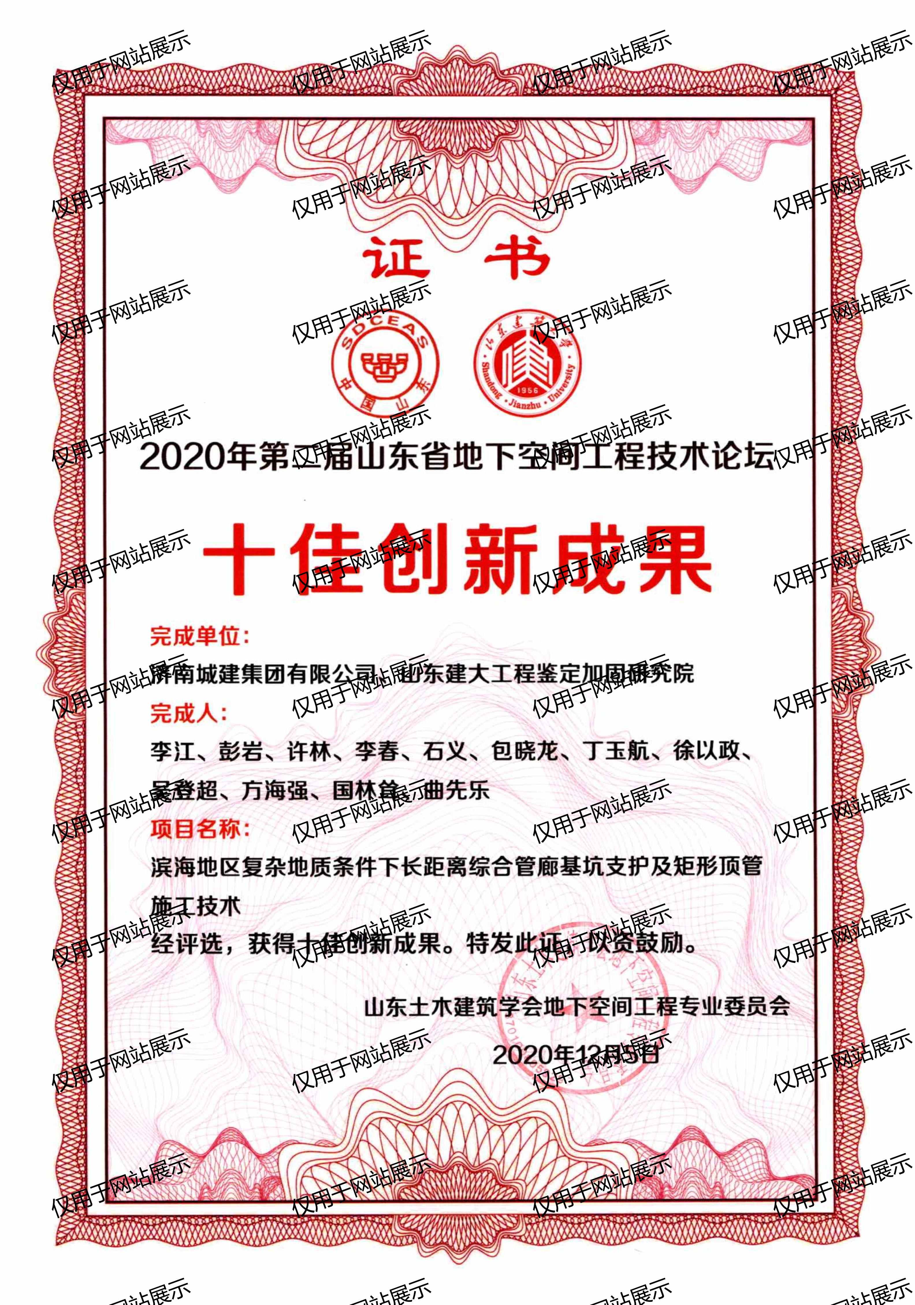 2020年第二屆山東省地下空間工程技術論壇十佳創新成果
