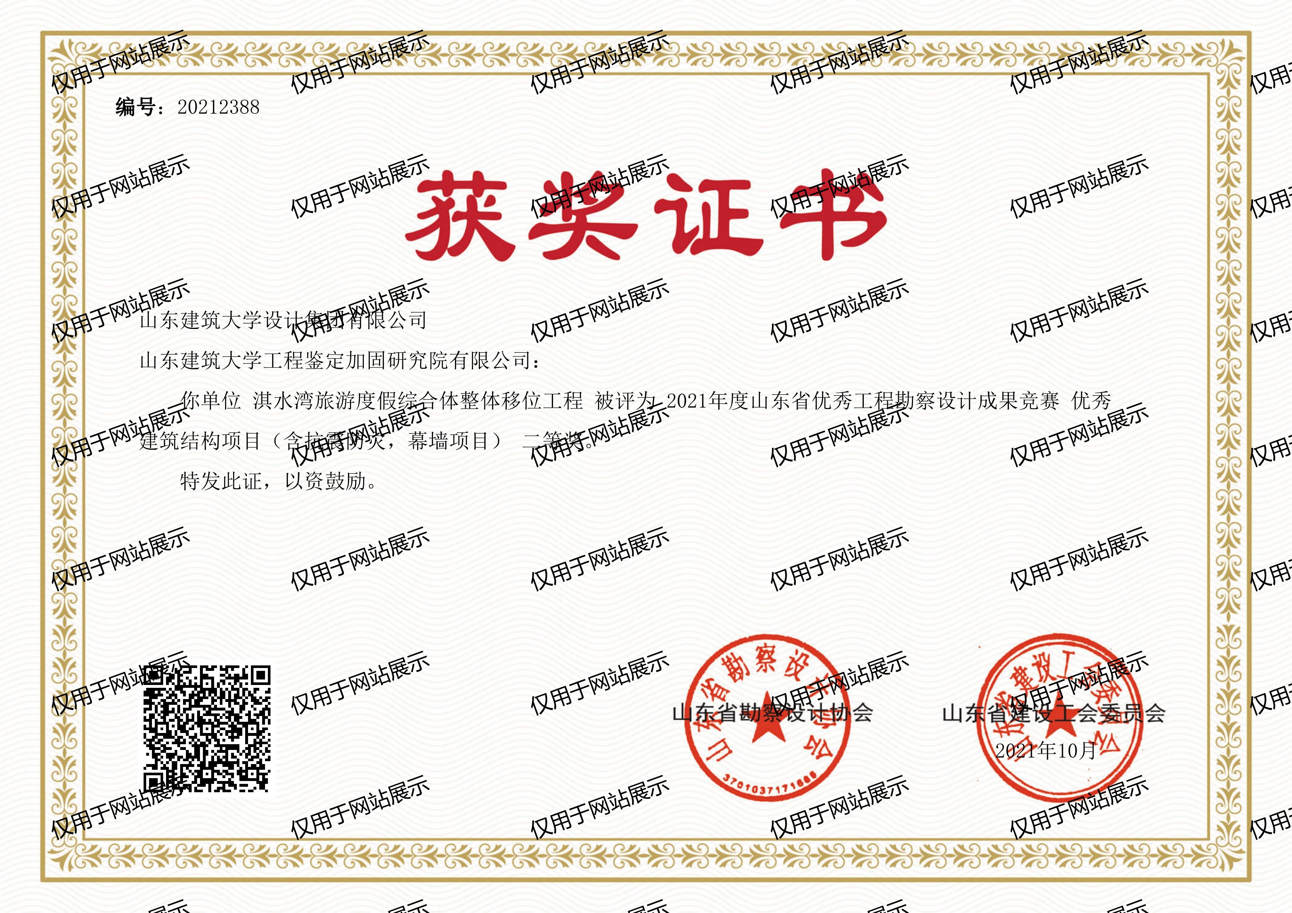2021年度山東省優秀工程勘察設計成果競賽優秀建筑結構項目(含抗震防災,幕墻項目)二等獎