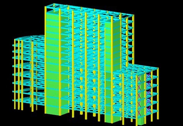 邢臺銀座商城,由于商場布局改變,要求拆除9軸線上J~K間250mm厚混凝土墻(1~5層),J軸線上8~9間250mm厚混凝土墻(1~5層)。拆除該位置墻體造成結構整體剛度不均勻,扭轉效應增大。為了不影響商場的使用功能,選擇在其他部位增加耗能鋼支撐的方法解決剛度中心的偏移。